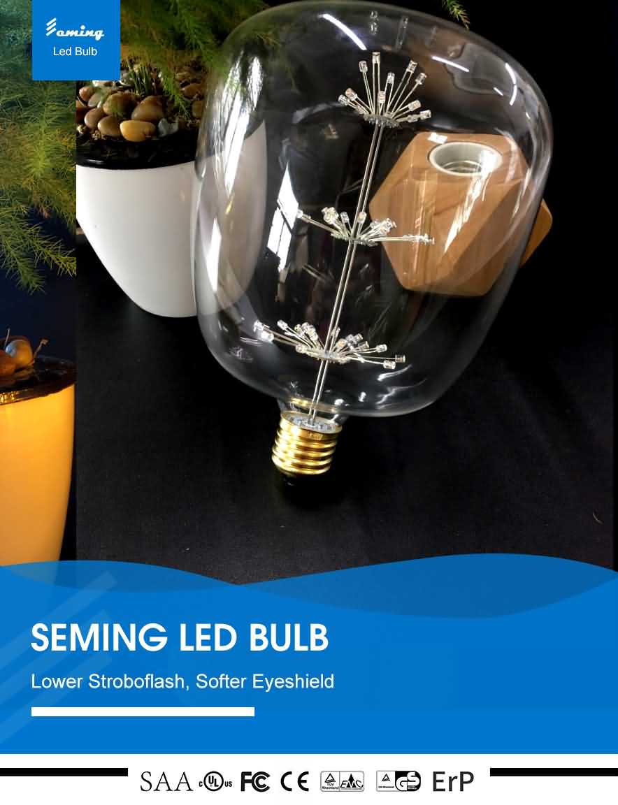 Globe led fireworks bulb is a series of the Edison fireworks bulbs. It has the same shape as retro filament bulbs, but used the LED light source. The globe led fireworks bulb will emit a warm yellow light, it can create a cosy and welcoming mood for any classic industrial and vintage designs. These vintage-inspired Edison bulbs are sure to add instant character to your lighting and place. Ideal for all homes, cafes, hotels, restaurants and retail shop, it fits almost everywhere and its uniquely designed are sure to have your guests take a second look at them. Led globe firework bulb series have several different designs available (the product images and detail specification please refer to the attached product manual). Besides, led globe firework bulb uses LED light source, compared with the traditional light will save much energy. The energy efficiency of 3W led bulb light is equal of 15W incandescent bulb.