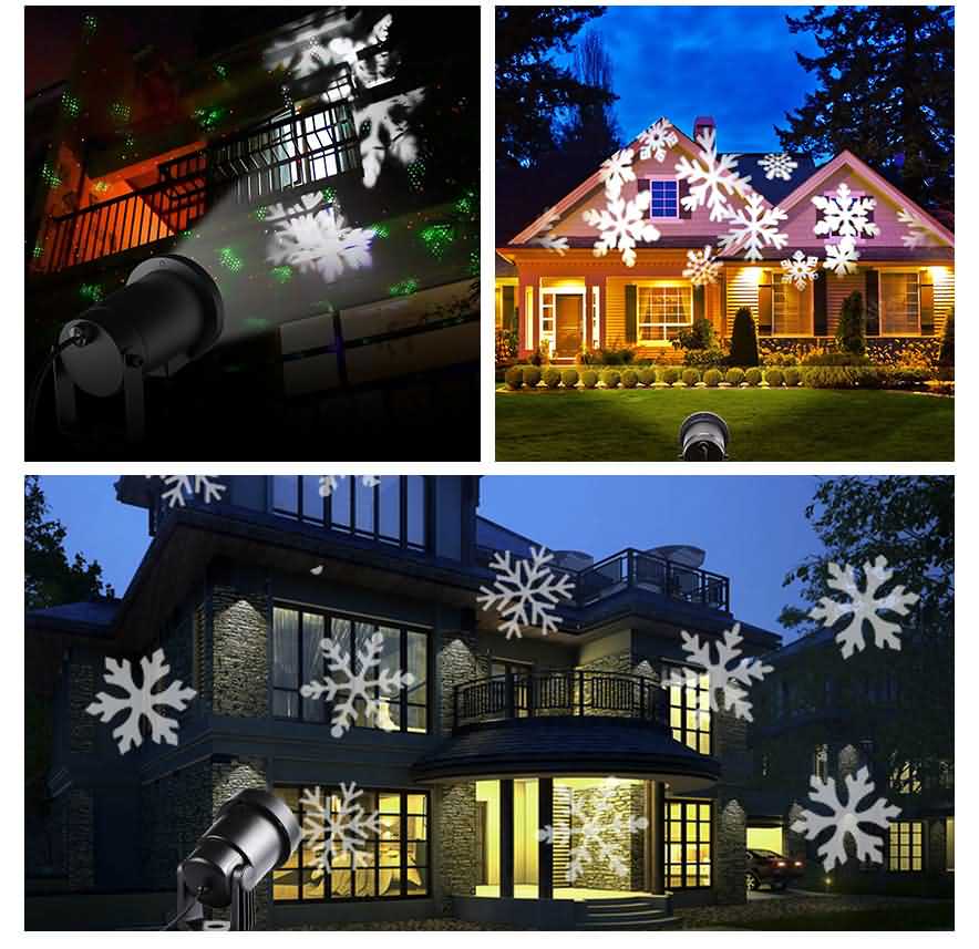 Christmas Laser Lights provides a unique lighting experience by projecting a moving white snowflake pattern effect.This light adds dynamic movement to your holiday decorating , it will create a festival atmosphere for you. Christmas Laser Lights is ideal for Halloween, Christmas, Valentine's Day, St Patrick's Day, Weddings and more Perfect for the holiday season. It can be used on your house, Trees, Garage door or shrubbery and any surface you can imagine. Besides , as this lamp uses led light source, so it will save 80% energy than traditional incandescent.