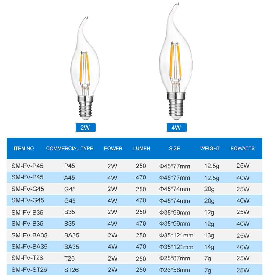 • 7. With 360° beam angle, the filament bulb can give out light omnidirectional.
