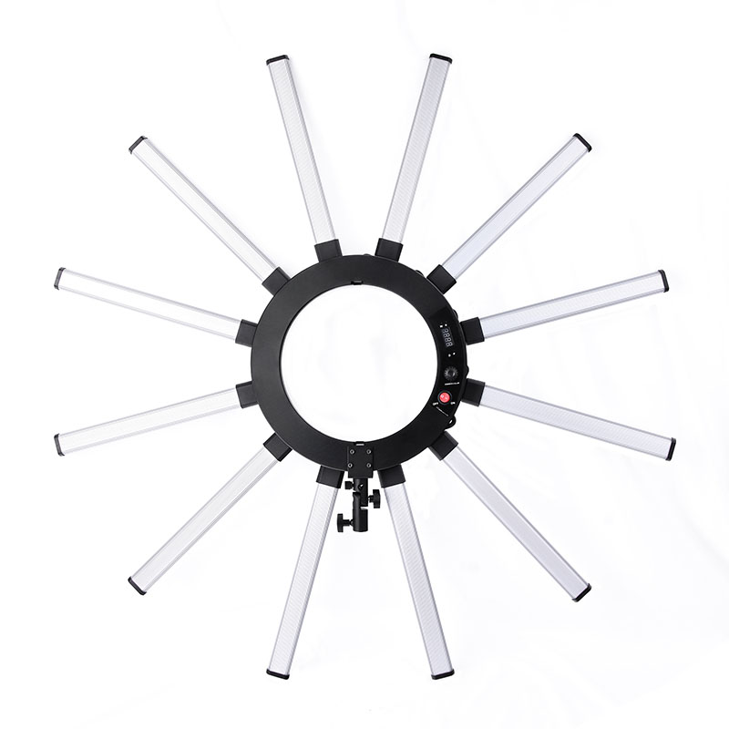 SM-1800S Ring Light Photography 12 Tubes take the circle as the center outward radiation design,showing sun-shaped shadow. It is controlled by microcomputer chip, digital tube display,and it is make of 12 tubes of high power there has 3 color temperatures,stable color temperrature,high CRI and long lifetime,it add international general DMX512 function,the output power is stepless adjustable light,the built-in temperature protection circuit,built-in automatic cooling system,this light can provide the high quality and power continuous source for real shed base,television,beauty and make up,traditional film photography,digital photography and photographic teaching and other fields.